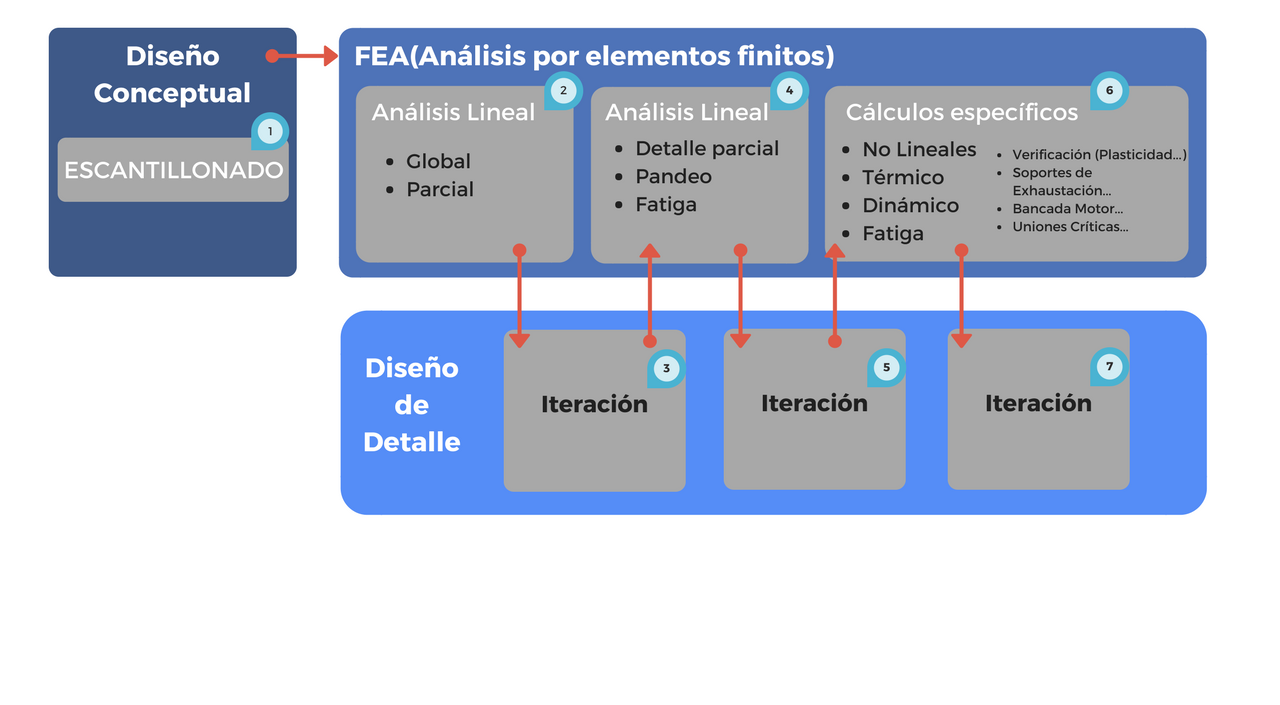 En el proceso del cálculo estructural de una estructura compleja como puede ser una bancada de un motor, los soportes de exhaustación, uniones críticas o otro tipo de procesos. Es necesario un conocimiento muy específico del tipo de cálculo requerido. Entramos a análisis no lineales, térmicos, dinámicos y de fatiga. El experto encargado de realizar este tipo de cálculos tiene una formación muy concreta en dicha área.